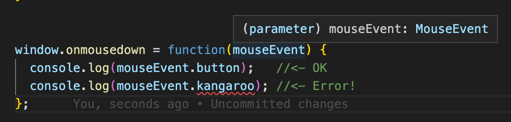타입스크립트가 window.onmousedown 의 타입을 검사하는데 문맥상 mouseEvnet 와 관련이 있다고 판단하여 타입이 추론되었다.