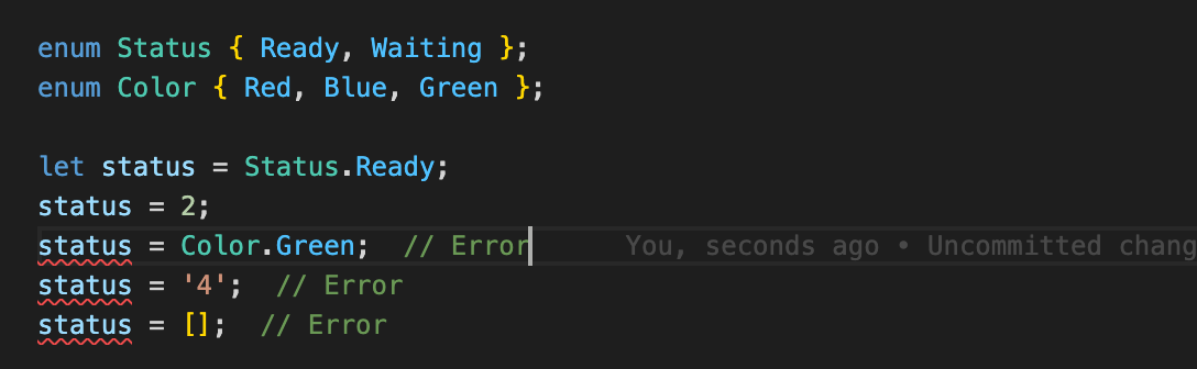 enum 은 number 와는 호환이 되지만 다른 타입들과는 호환이 되지 않습니다.
