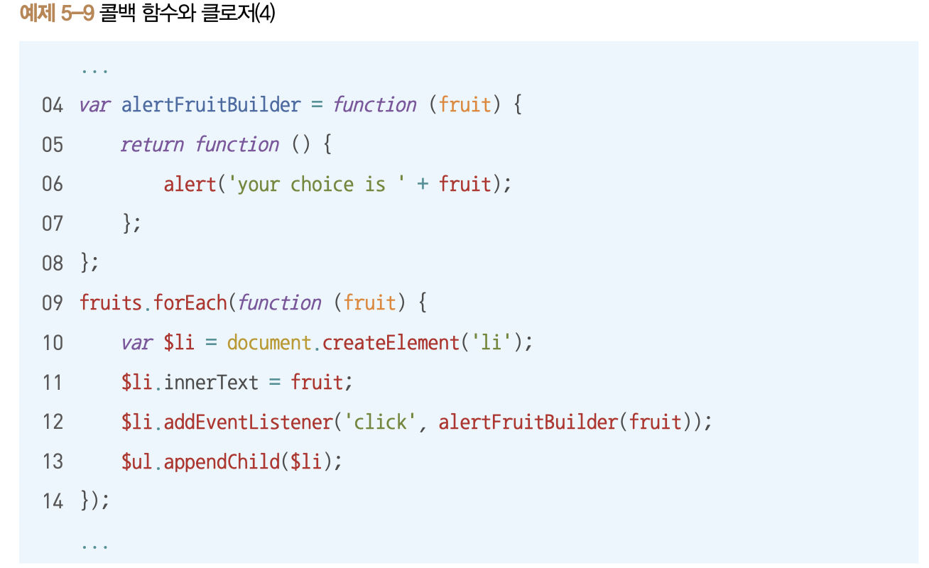 alertFruitBuilder 의 인자로 fruit 을 넘겨주고 함수는 함수를 리턴함으로써 콜백함수의 형태를 취하게 됩니다.