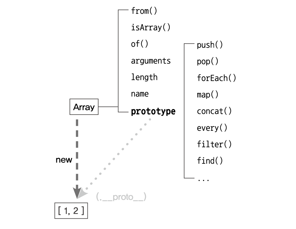 arr 변수는 인스턴스로 1, 2 를 가지고 있고 prototype 을 또 가지고 있습니다.