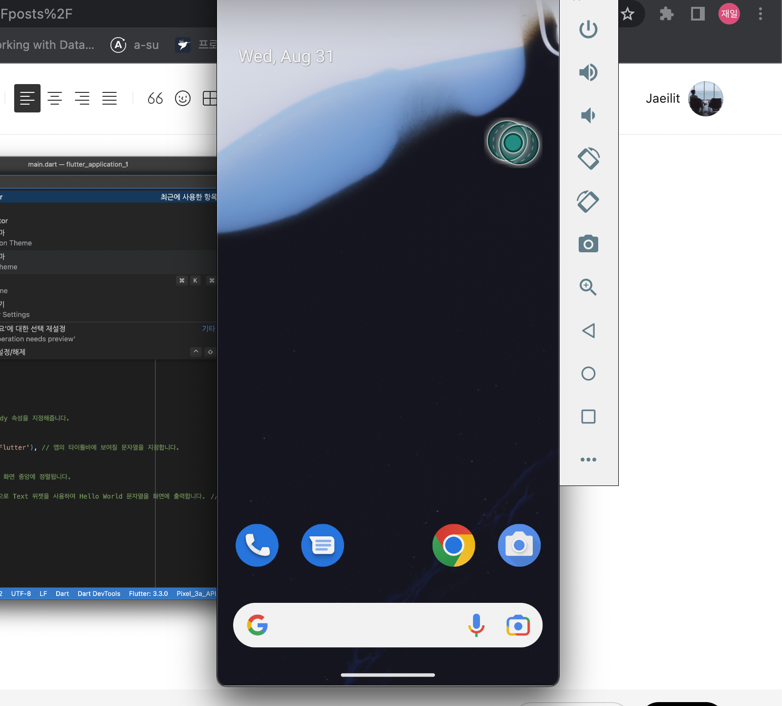 사내스터디로 플러터를 해보자는 이야기가 나와서 간단하게 셋팅하여 실행시켜봤다.