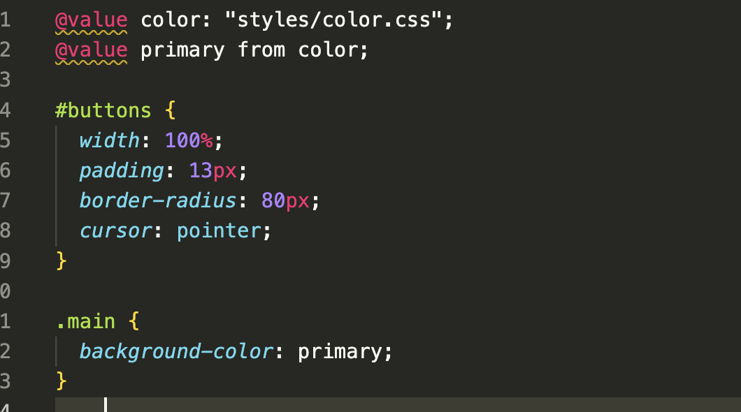 theme 같은 파일을 만들고 @value 변수명 : 스타일; 을 정의해두면