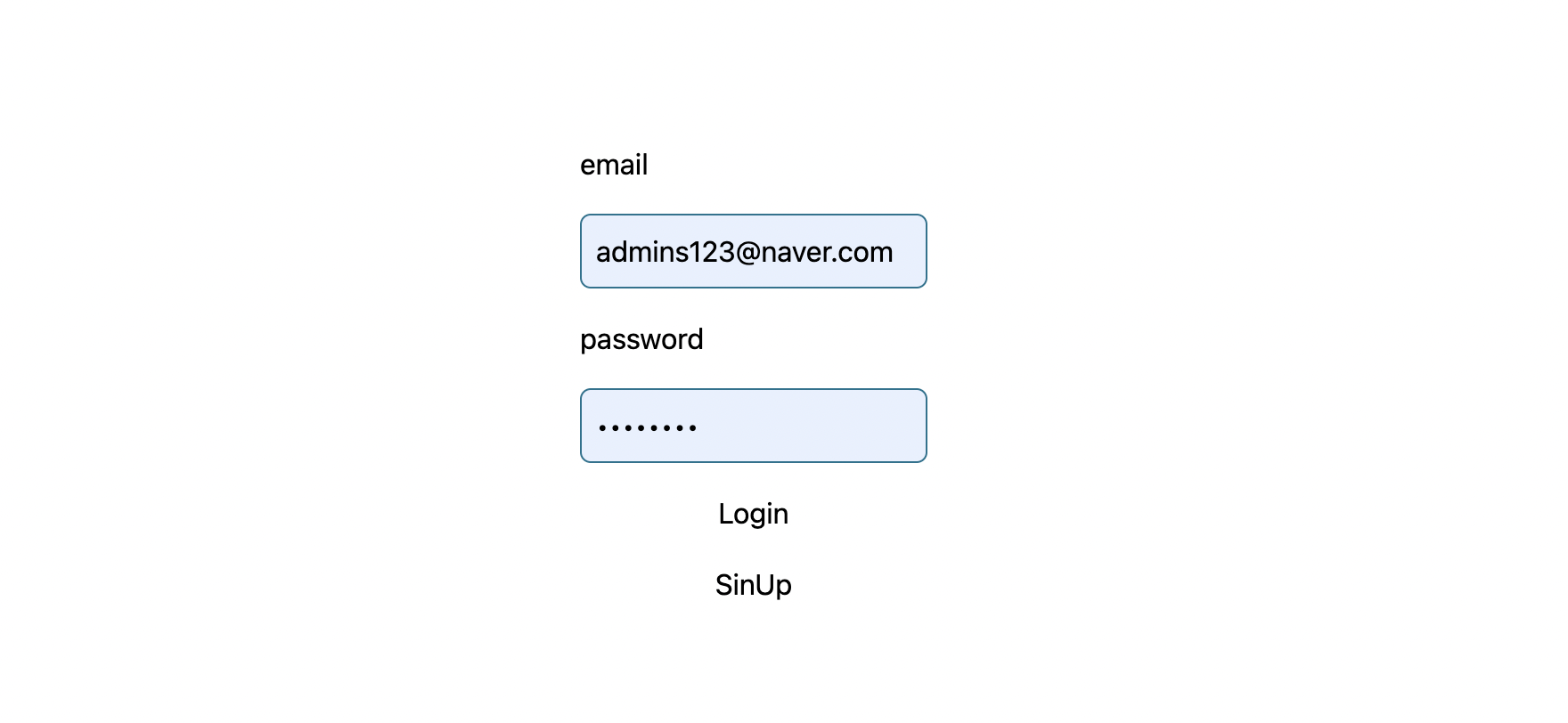 아래와 같이 email 과 password 를 login input 값으로 사용하고 싶은데