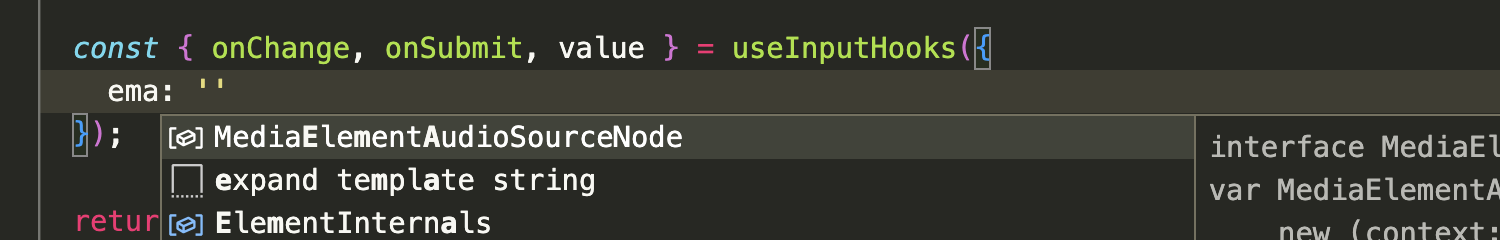 useInputHooks 는 { string : string | number } 객체를 받을거라고 타입을 가드해주지만 내가 email 과 password 를 보낼거라는 건 생각도 못하고 있으니 자동완성을 안해준다? 못해준다?