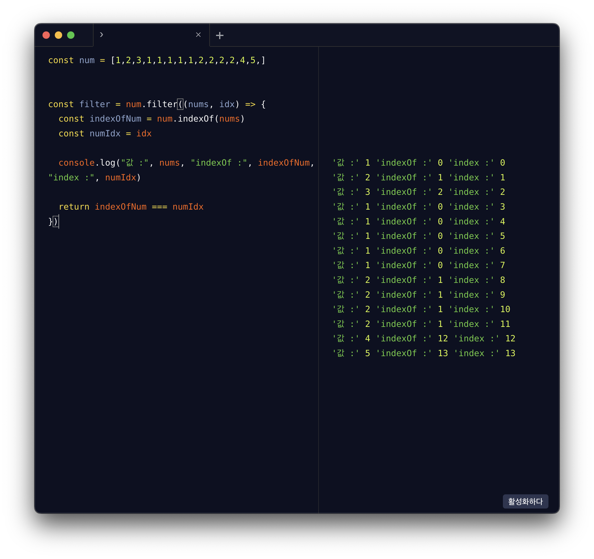 2. indexof 와 filter 의 활용
