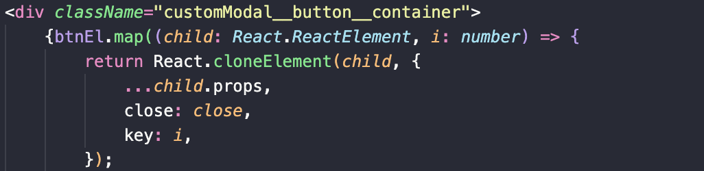 cloneElement 는 말 그대로 복사한 JSX 입니다. 컴파운드 컴포넌트의 메인합성컴포넌트에서 공통적으로 아래에 props 를 내려줄때 사용 할 수 있습니다.