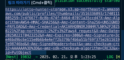 - presigned URL은 유효 기간이 있으므로(아까 백엔드에서 설정한 5분) 발급 후 최대한 빨리 사용해야 합니다.