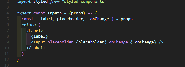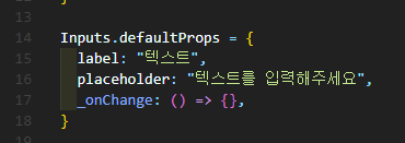 3. Inputs 컴포넌트에서 props 값(label, placeholder, _onChange) 들을 입력 해준다.