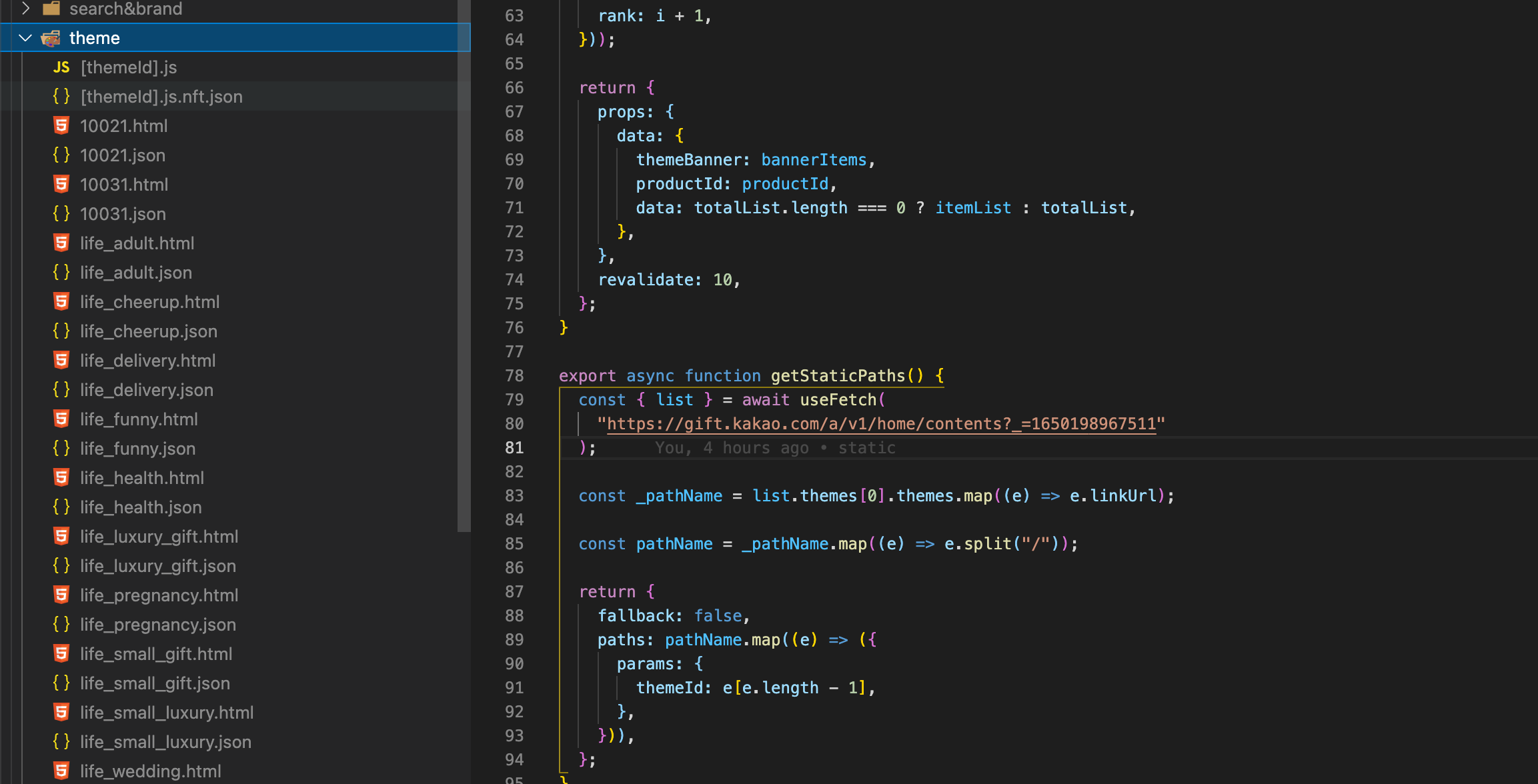 사진은 빌드 했을 때 제가 정한 paths 들의 html 이 미리 만들어진 모습입니다.