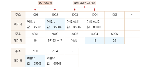 obj1 은 5002 의 주소 값을 저장하고 5002는 객체 영역 7103 ~ 7104 를 주소 값으로 저장