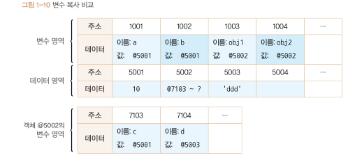 1. 변수 명 obj1 1002번 주소 -> 데이터 영역의 5001번을 바라봄