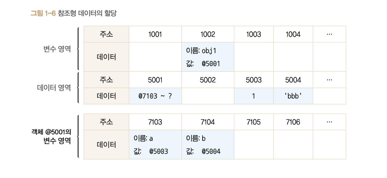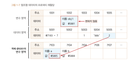 변수 a 에 새 값을 할당하면 빈 데이터 주소에 값을 할당하고 그 값을 참조한다.