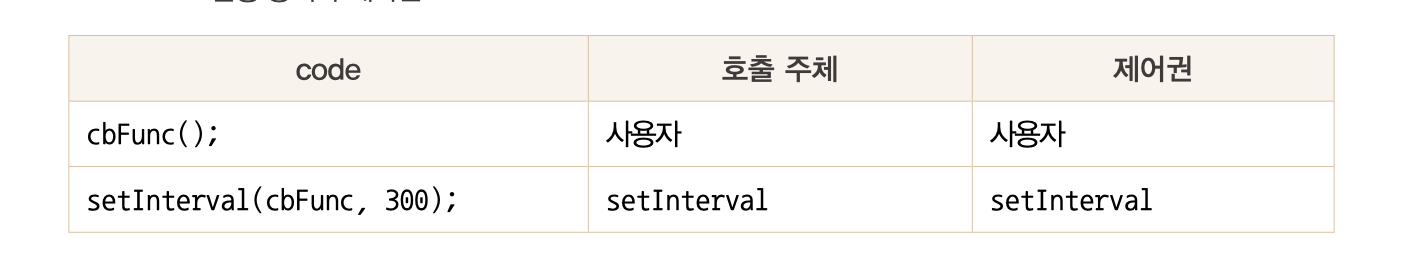 setInterval 의 파라미터 값으로 cbfunc을 받아서 cbfunc의 제어권을 받은 setInterval이 cbfunc의 함수를 실행함